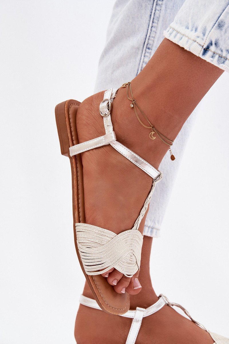 Zapatillas de mujer con plataforma y hebillas doradas, color arena