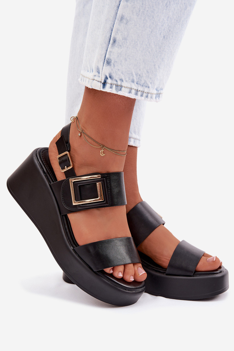 Sandalias de mujer con una plataforma Con decoraciones Detalem de color negro Nelira