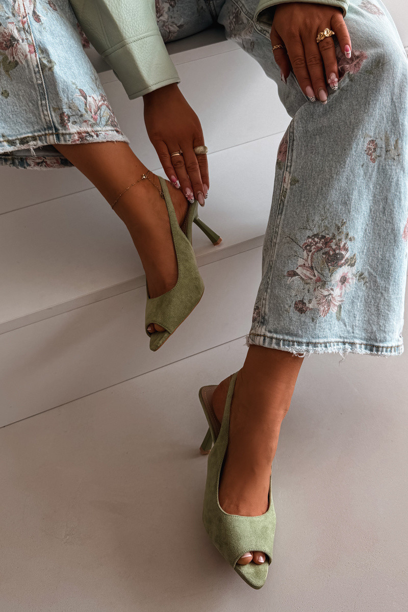 Sandalias de mujer con tacones finos de ante sintético verdes Sevina