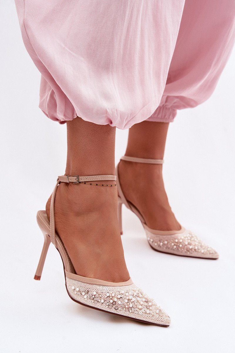 Sandalias de mujer con tacones finos Decorado con brillo I color coralikami beige Nedira