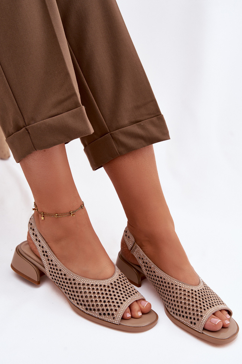 Decorado Sandalias caladas Femenino de gamuza reloj D&A CR61-3131 beige