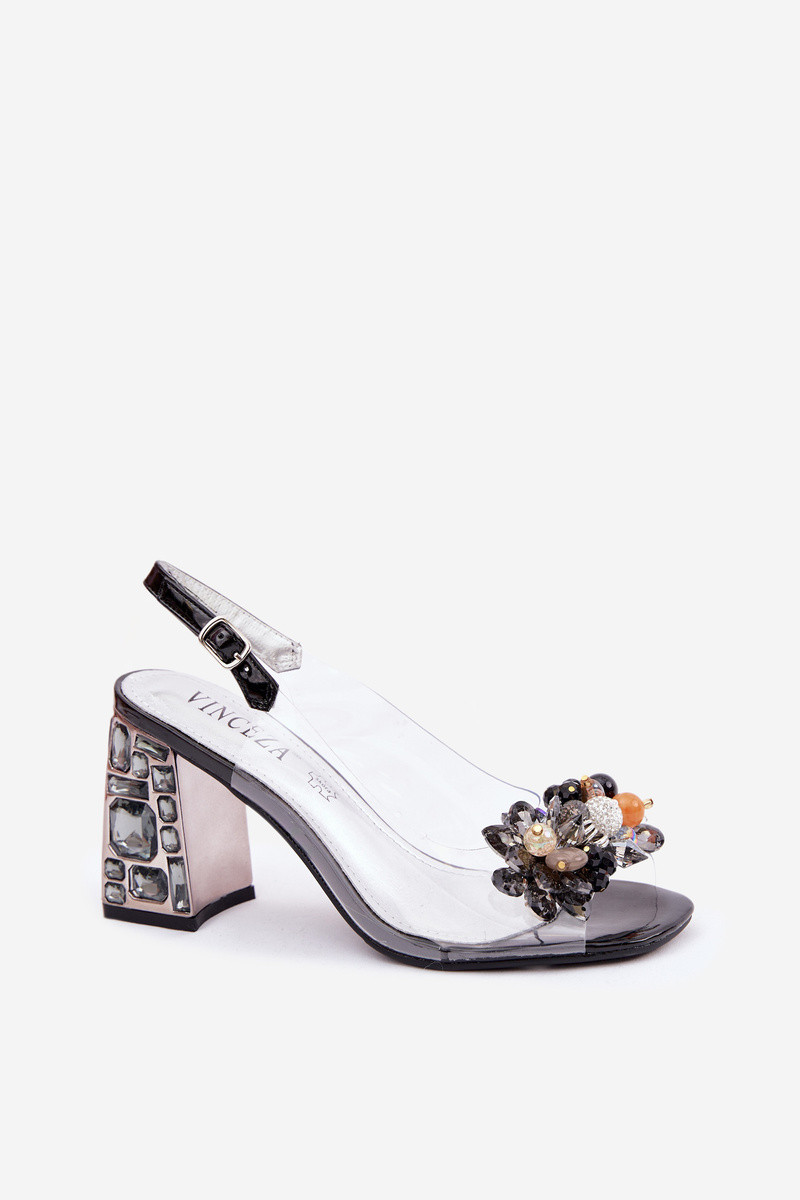 Sandalias transparentes con tacones y brillantes color negro Vinceza 70121