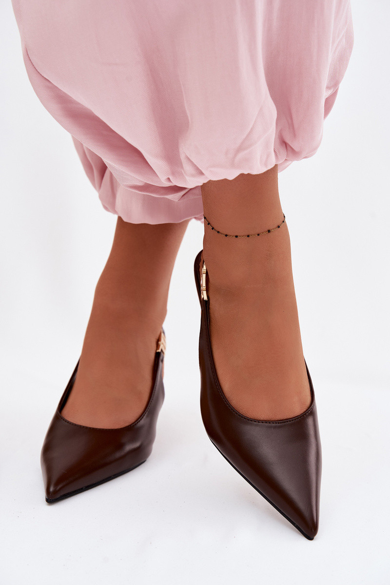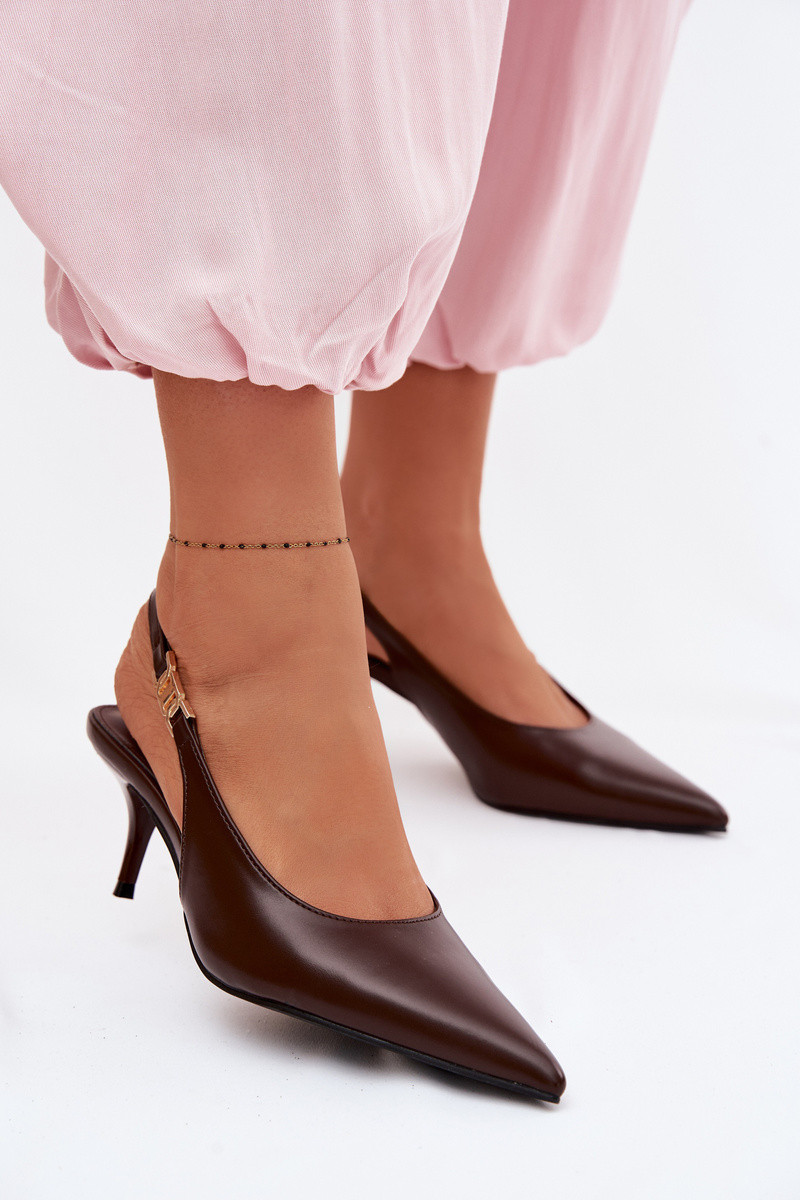 Sandalias de color chocolate de cuero sintético con tacones delgados para mujer Jelissey
