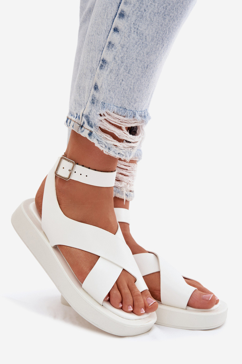 sandalias de cuero ecológico con una plataforma el color blanco Zella