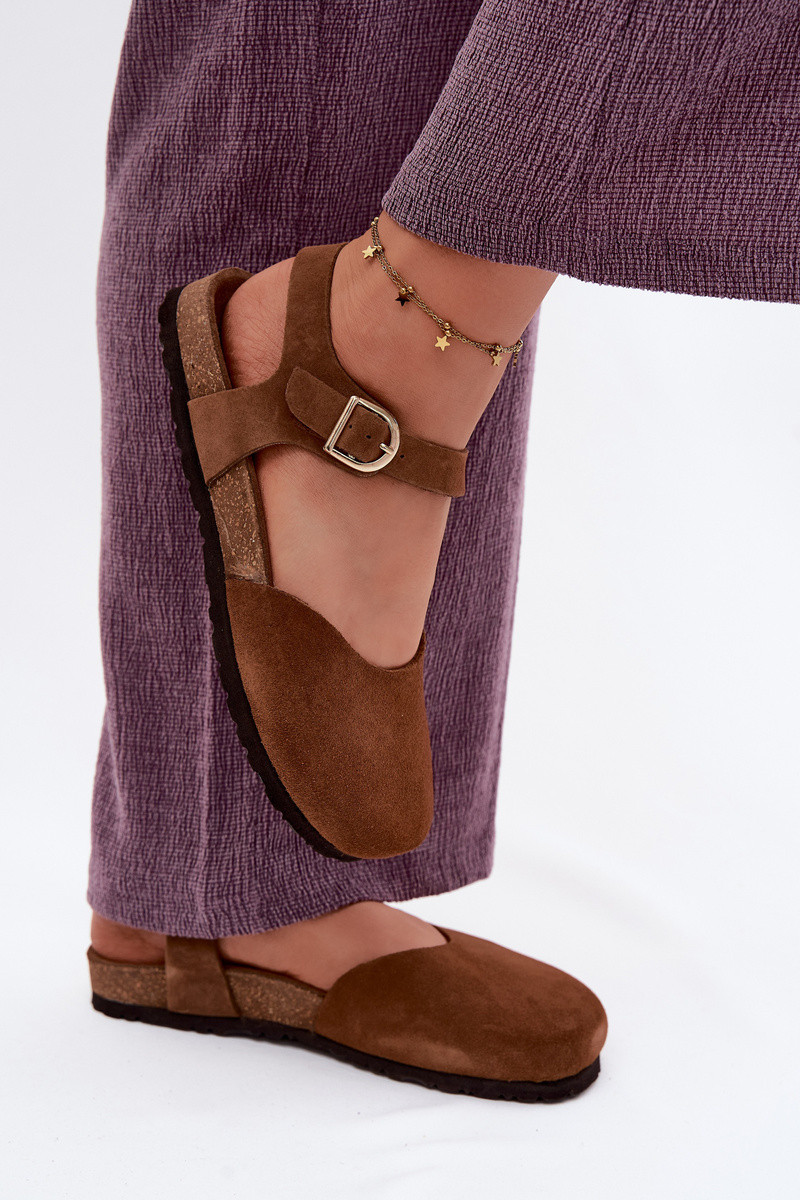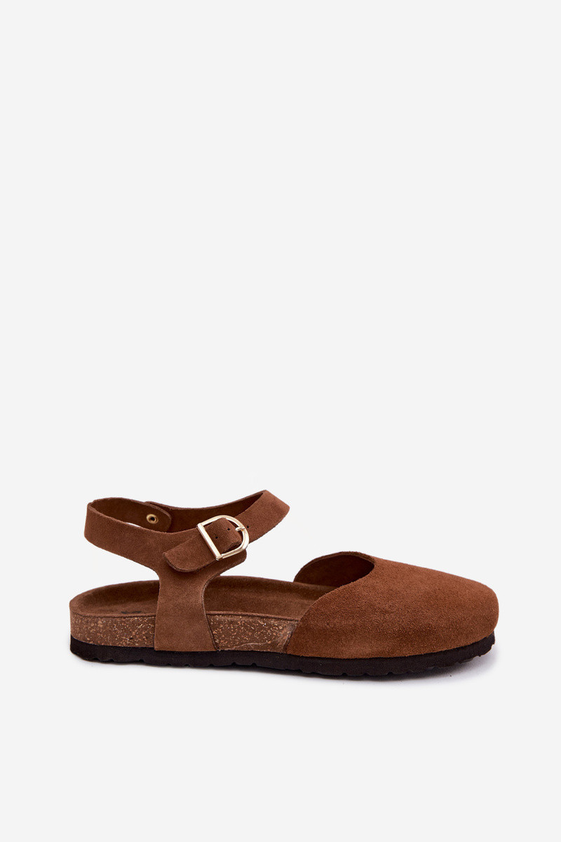 Sandalias de cuero de ante con dedos cerrados Tai turiciejka H7365-02 marrones