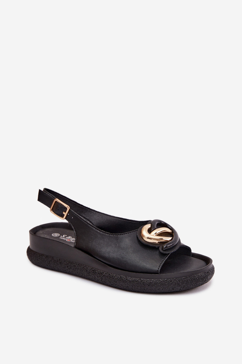 Piel Sandalias plataforma con adornos S.Barski KV61-6047 de color negro