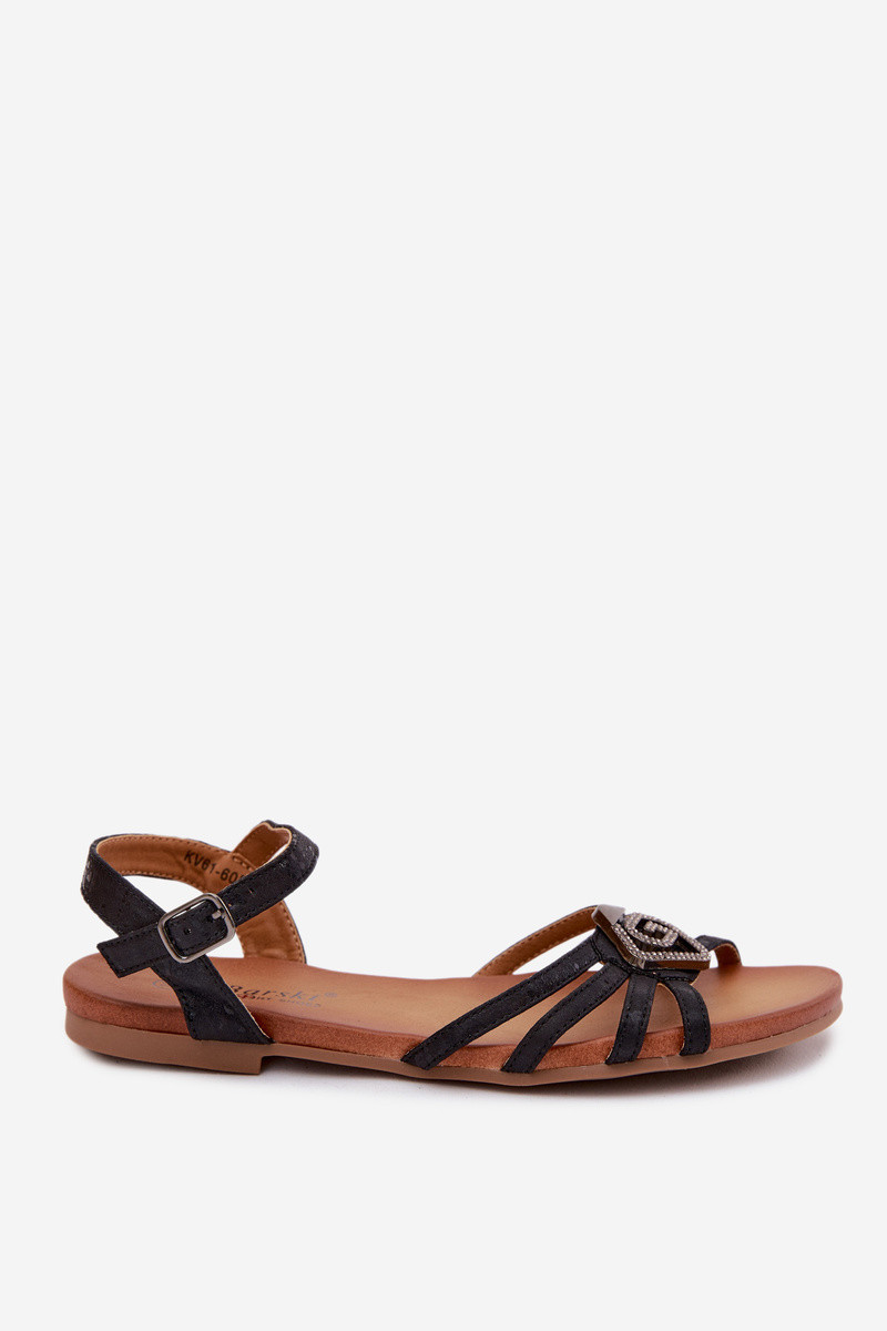 Sandalias planas para mujeres con tiras y decoración S.Barski KV61-6056 color negro