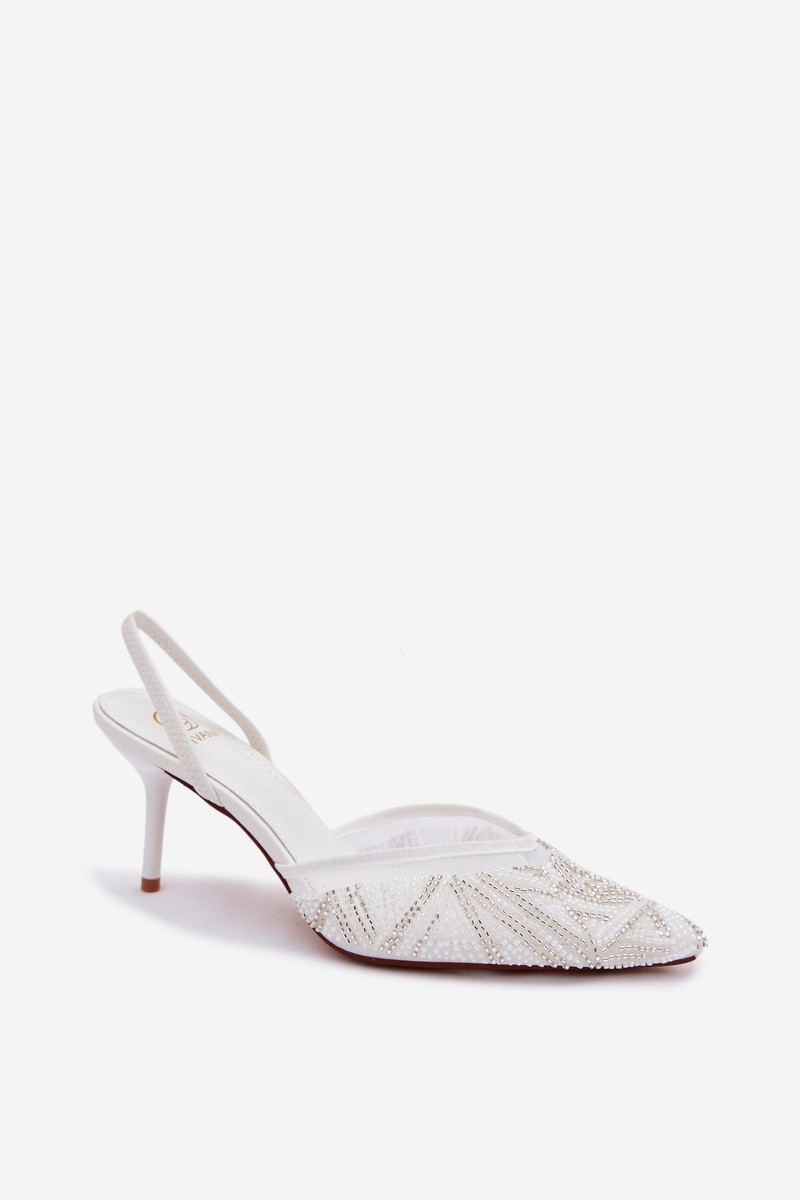 Sandalias decoradas con malla y tacones finos color arena Bedira