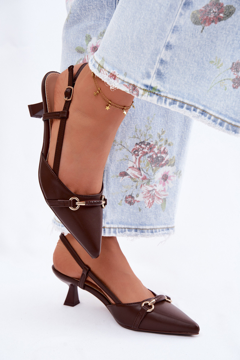 Sandalias de mujer con tacones Ze Szpiczastymi Noskami color marrón Felessa