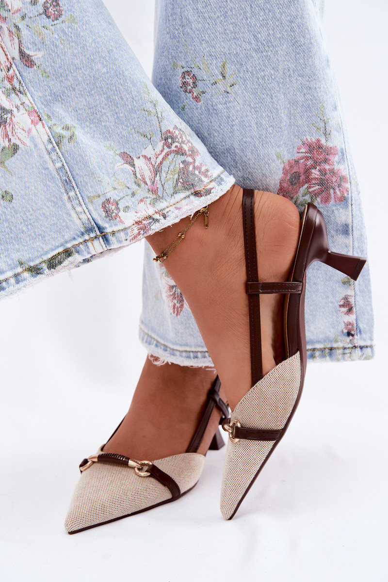 Sandalias de mujer con tacones Ze Szpiczastymi Noskami marrón-beige Felessa