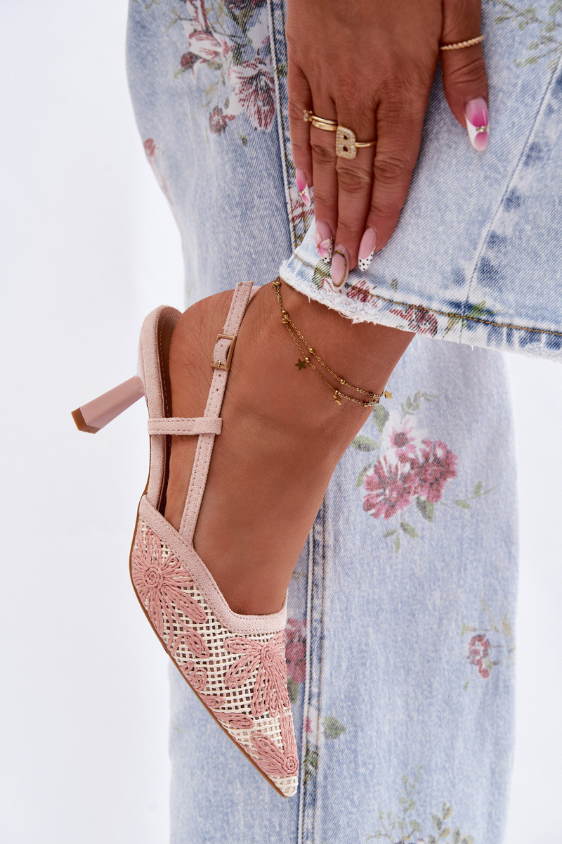 Sandalias de tacón alto color arena con flores Kelmira