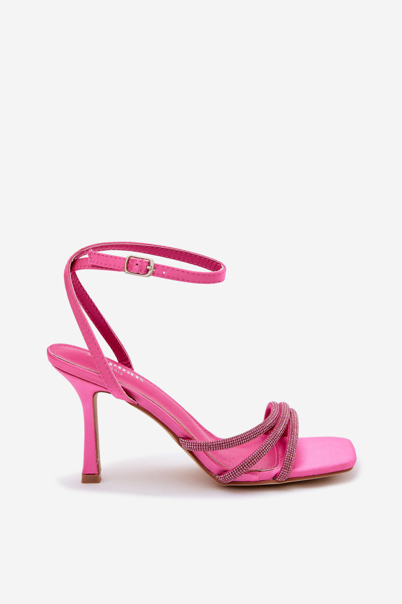 Sandalias de mujer con tacones finos Tiras con ojos centelleantes color rosa Chiara