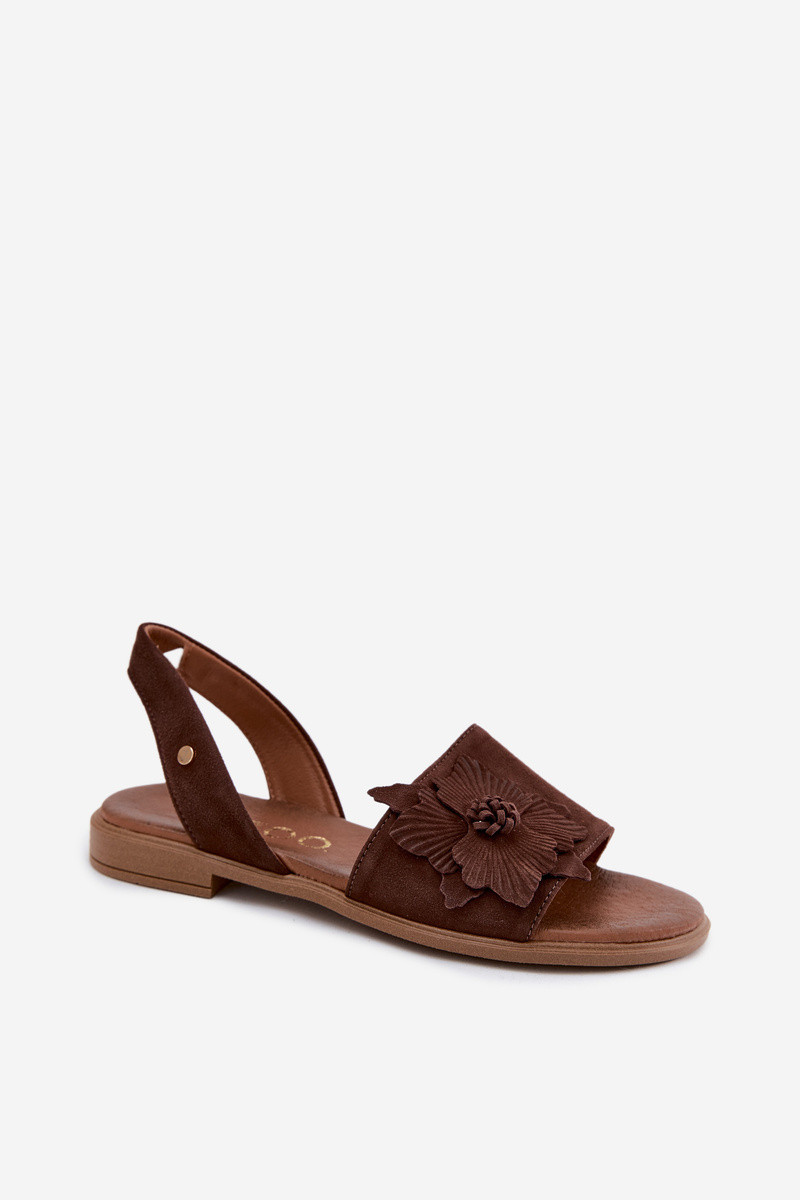 Sandalias de ante con tacones anchos y flores decorativas Zazoo 407471 en color marrón