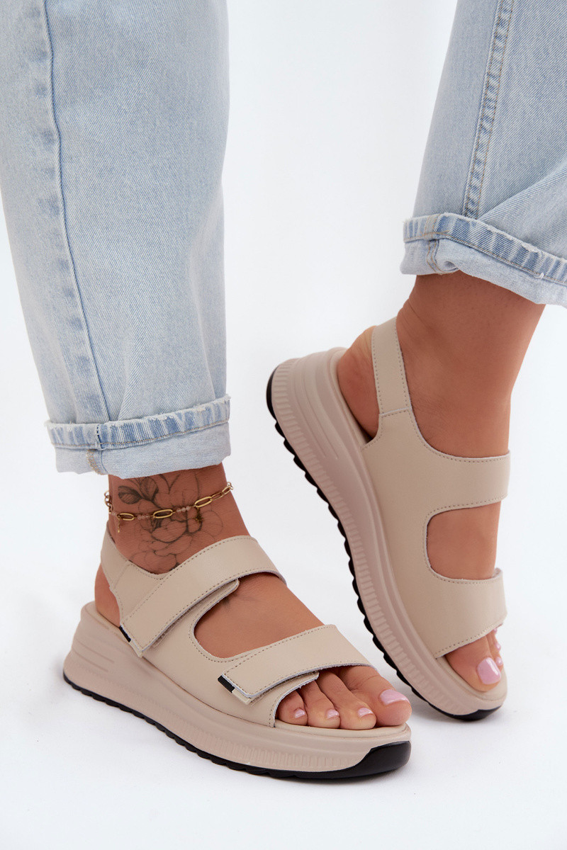 Sandalias de mujer Femenino con una plataforma con sujetadores adhesivos beige Jemela