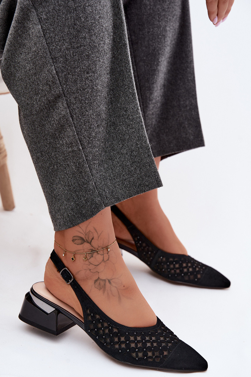 Sandalias de ante negras con elementos calados y malla Klocke D&A