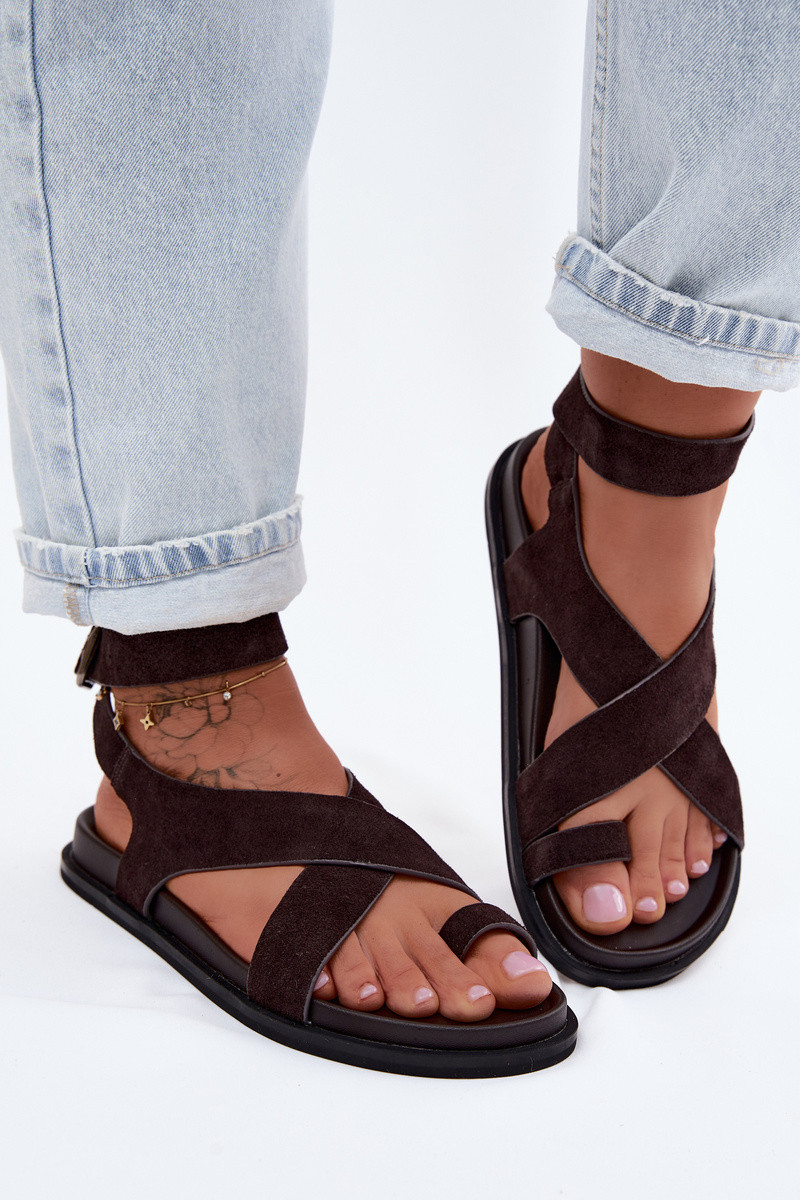 Sandalias planas de ante natural D&A CR61-3049 chocolate
