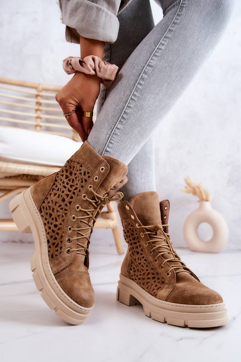 Botines calados en ante marrón Aileen