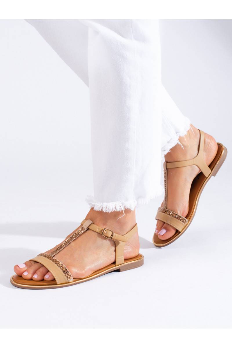 Sandalia plana Shelovet con cristales en color beige