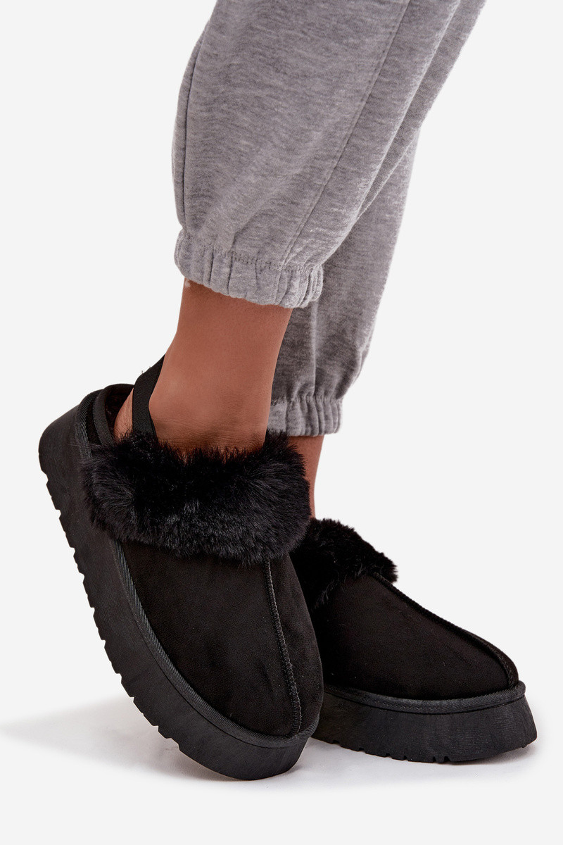 Zapatillas de casa de mujer con plataforma y piel color negro "Linaris"