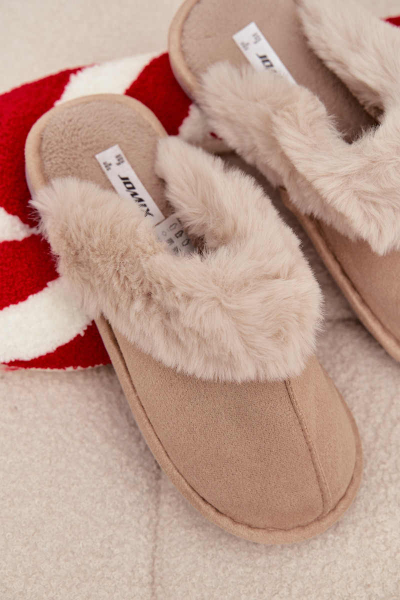 Zapatillas Femenino con un abrigo de piel beige Carisse