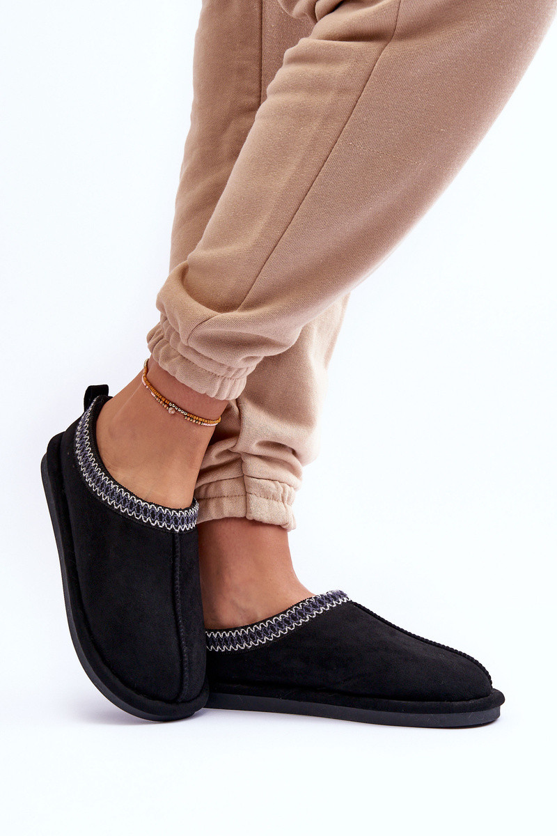 Pantuflas de ante para mujer con pelaje color negro Polinna