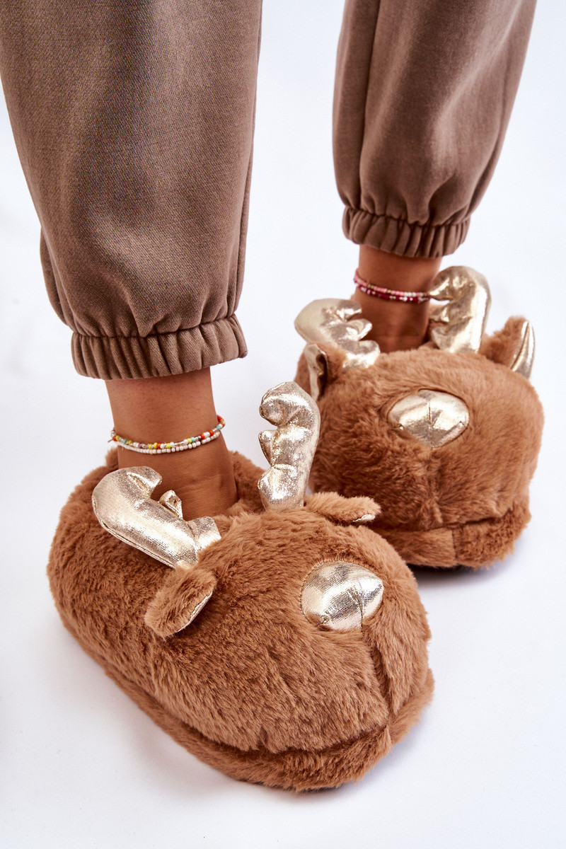 Femenino con un abrigo de piel Un modelo convincente zapatillas Reno color marrón Comet