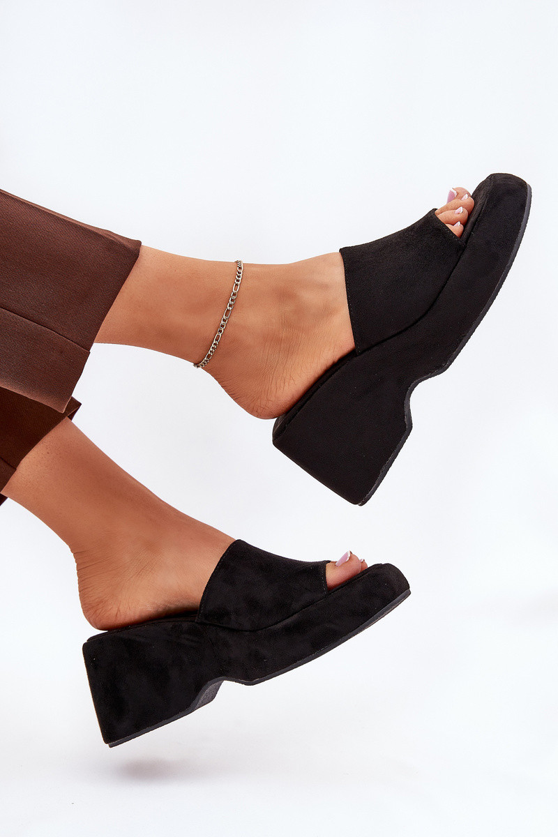 Zapatillas de casa de ante sintético para mujer con plataforma color negro Afisal