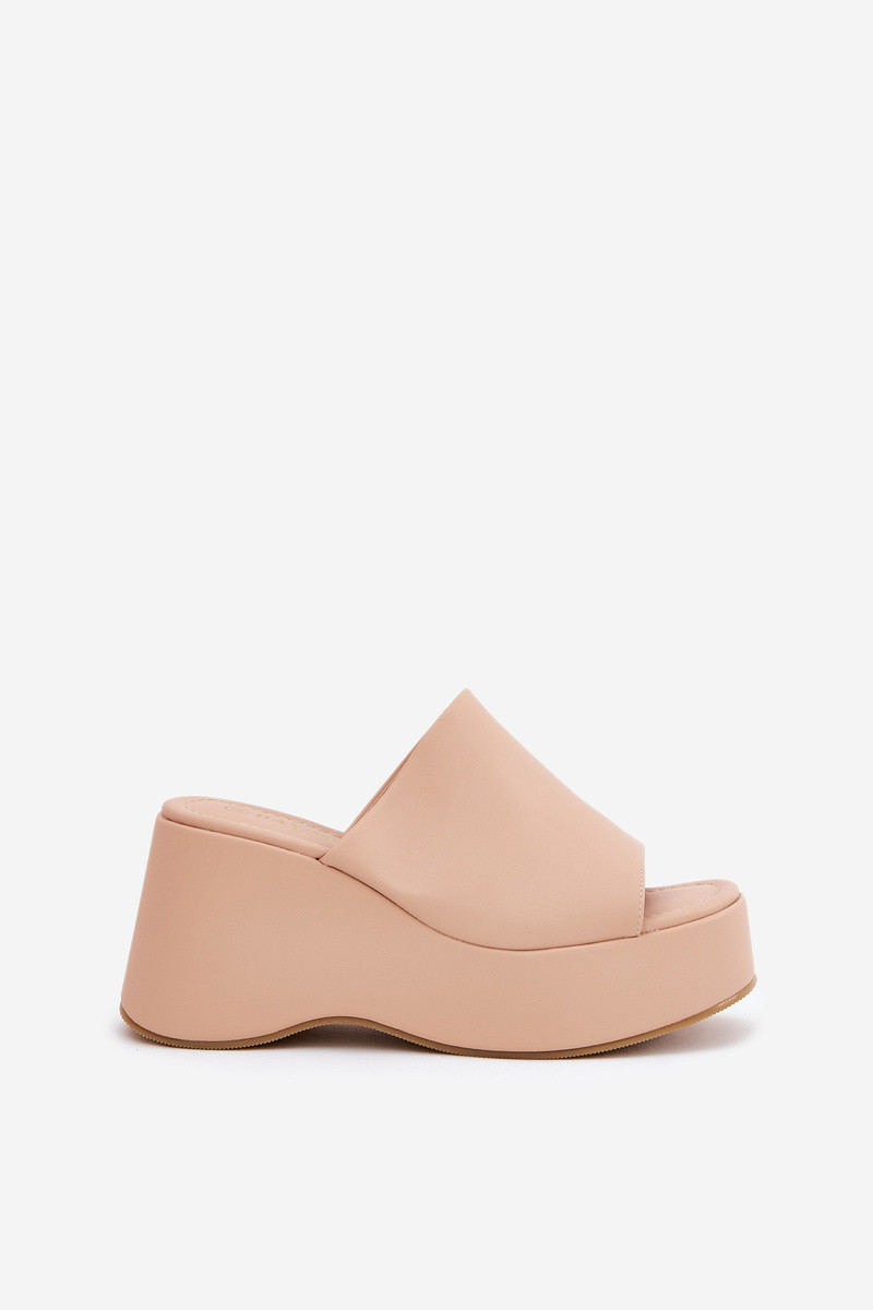 Zapatillas de mujer de piel sintética con plataforma color arena