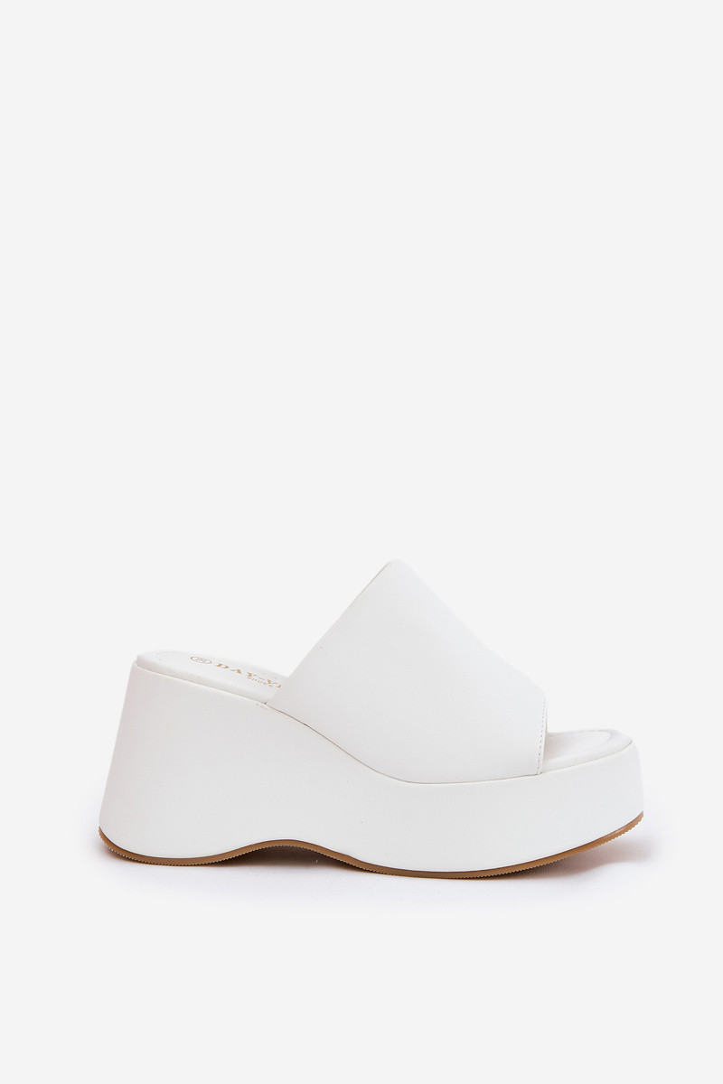 Zapatillas de mujer de piel sintética con plataforma color blanco