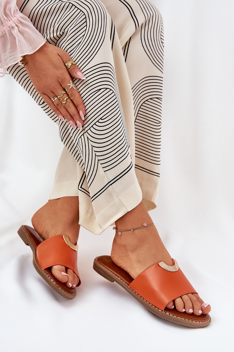 Zapatillas de mujer de piel sintética con detalles ornamentales color naranja Mevith