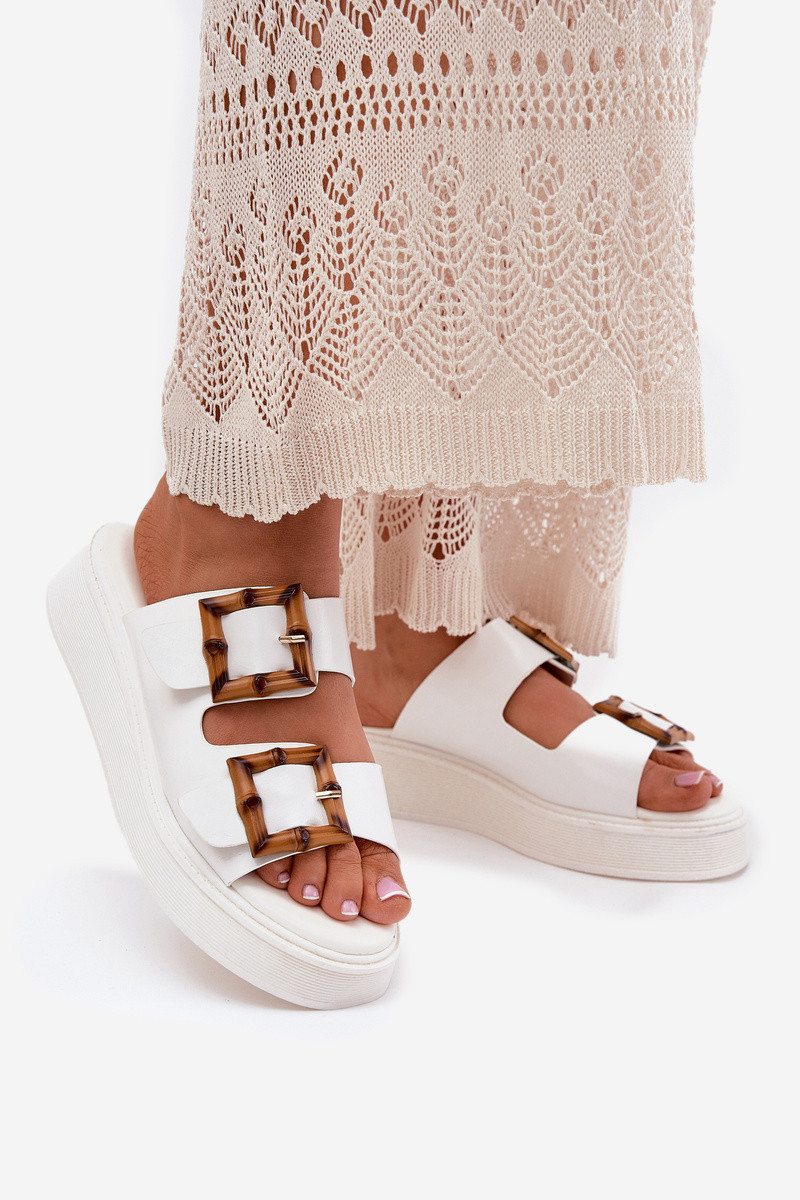 Chanclas de mujer de piel sintética con plataforma y hebillas Xanivia color blanco