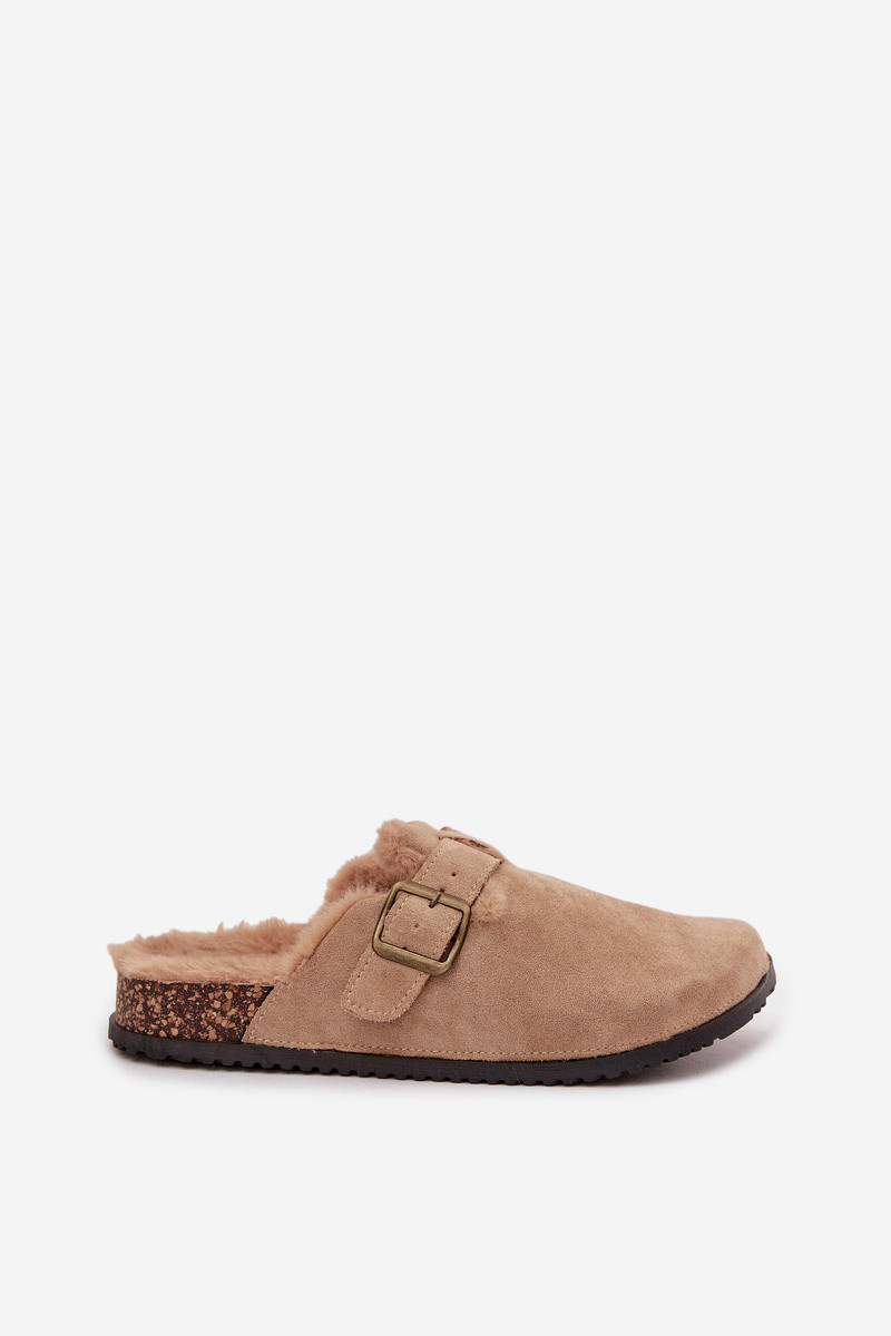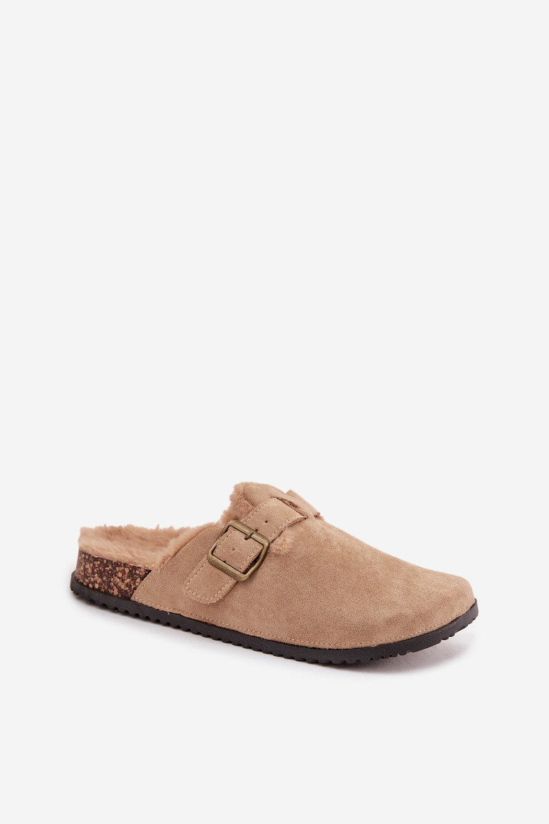 Zapatillas de mujer tipo zuecos, forradas con piel sintética y hebillas de color arena Sylisse