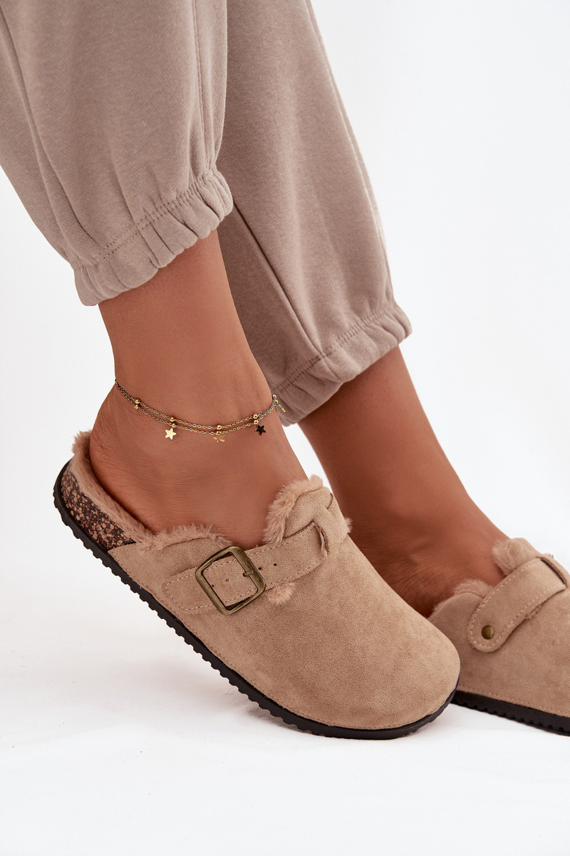 Zapatillas Zuecos Femenino calentamiento con pelo dentro con hebillas beige Sylisse