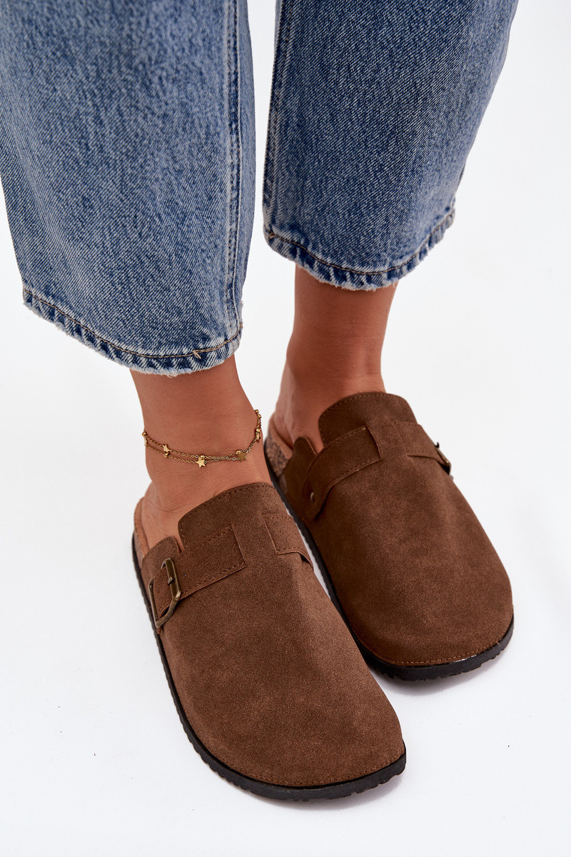 Zapatillas Zuecos Femenino i con una plataforma con hebillas color marrón Selio