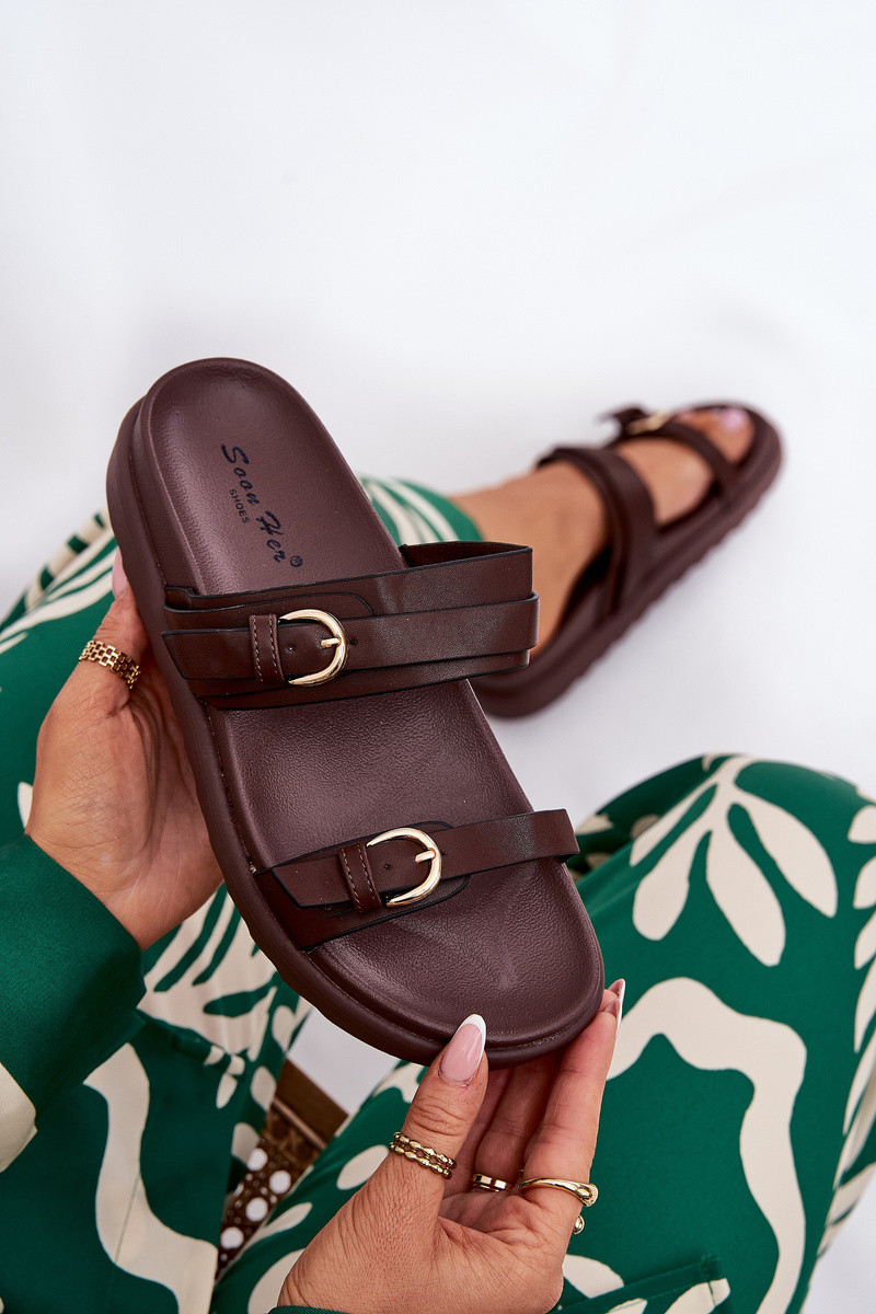 zapatillas de mujer con una plataforma Ze color doradomi con hebillasmi color marrón ENernone