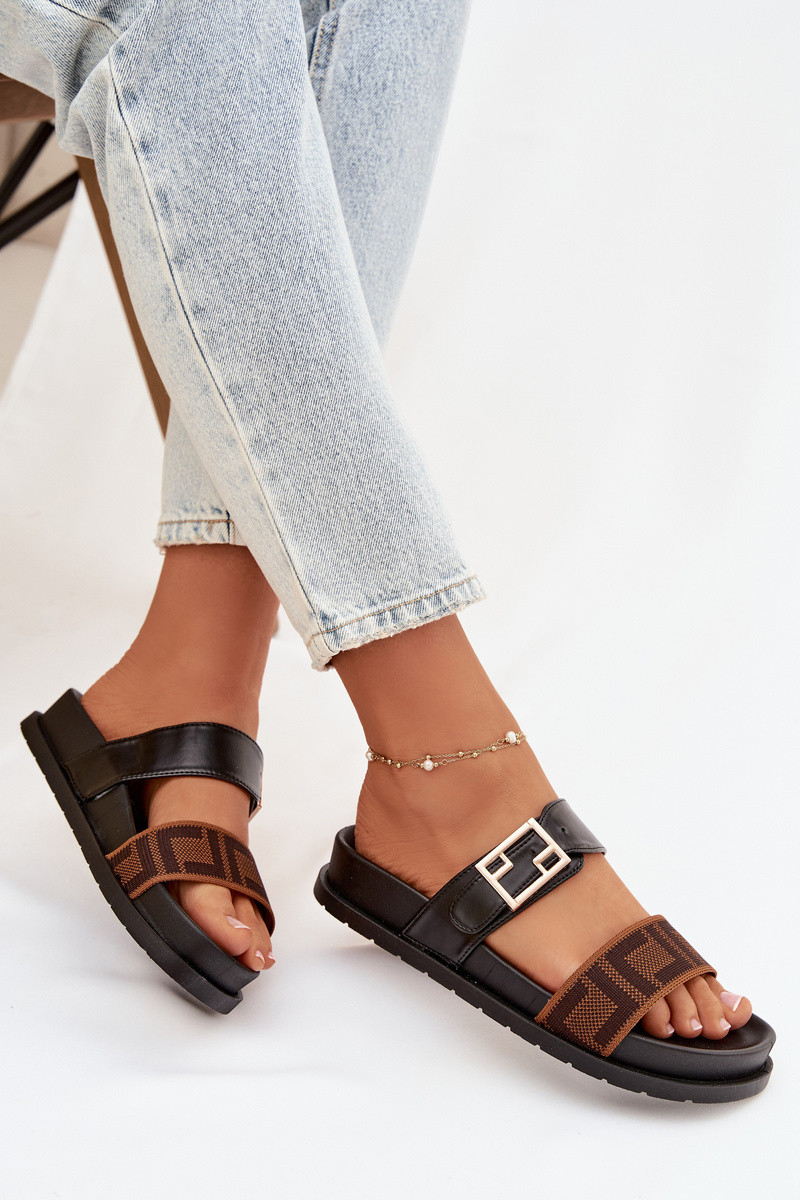 Zapatillas de mujer con hebillas doradas, color negro