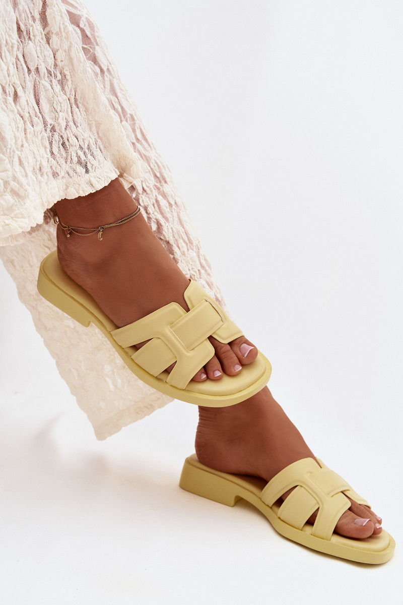 Zapatillas femeninas con tacones anchos color amarillo "Lorania"