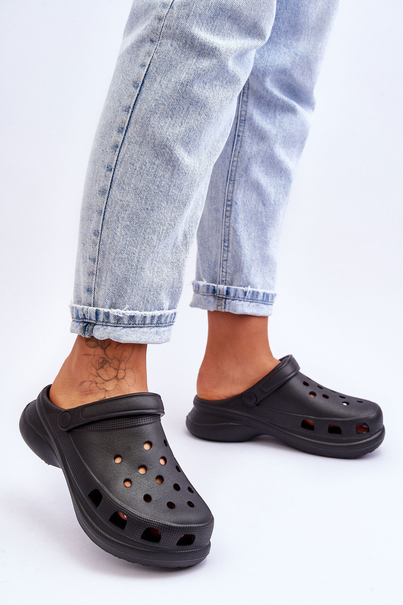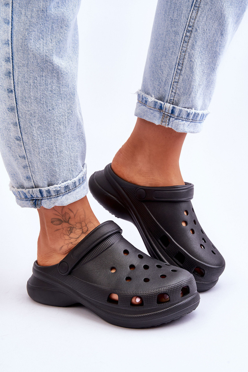 Pantuflas de espuma cocodrilos con suelas masivas de moda de color negro Katniss