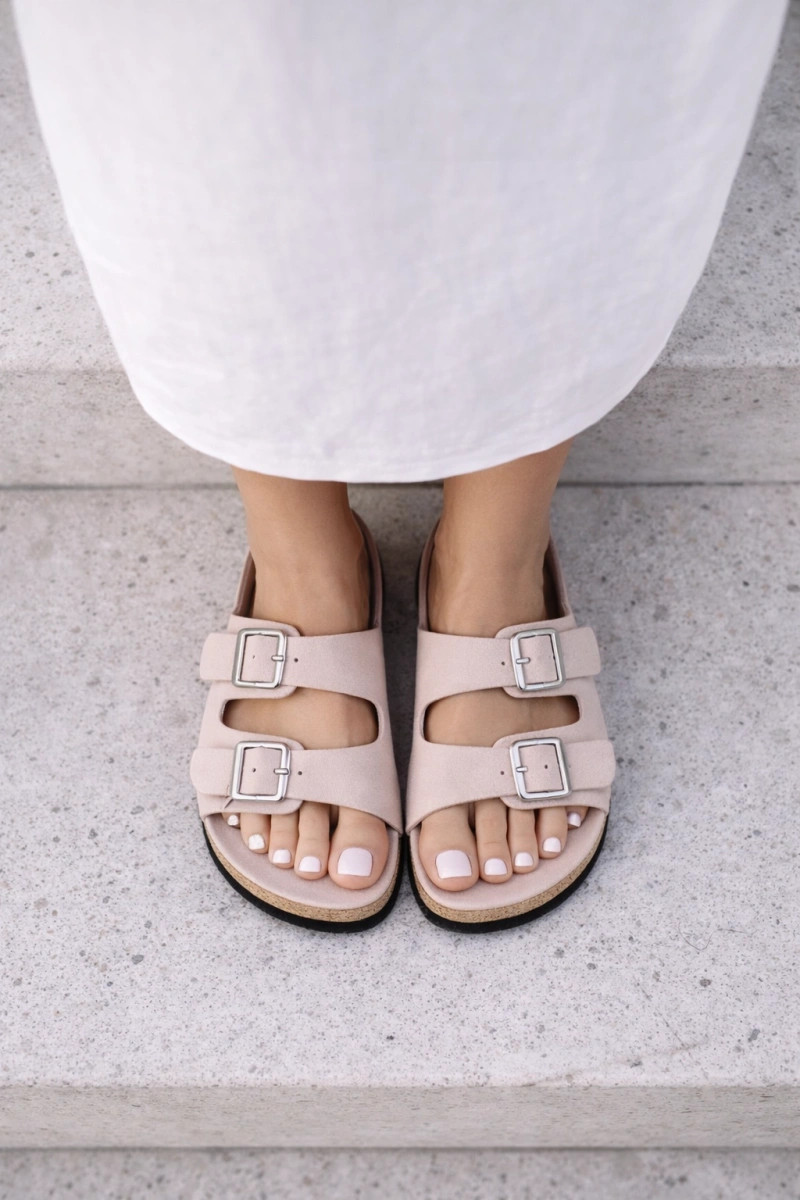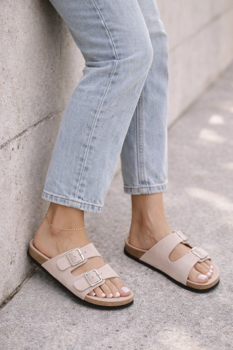 Zapatillas de mujer rosa claro con hebillas "Oliena"