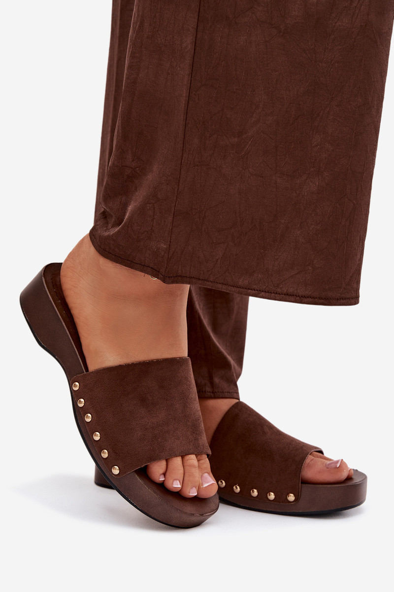 Chanclas de mujer con clavos dorados color chocolate Ferinna