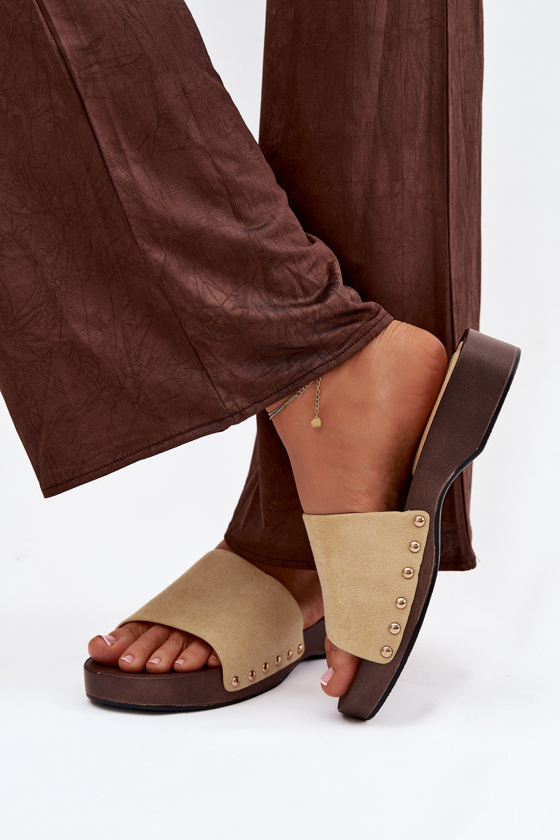 Chanclas de mujer con clavos dorados color amarillo Ferinna