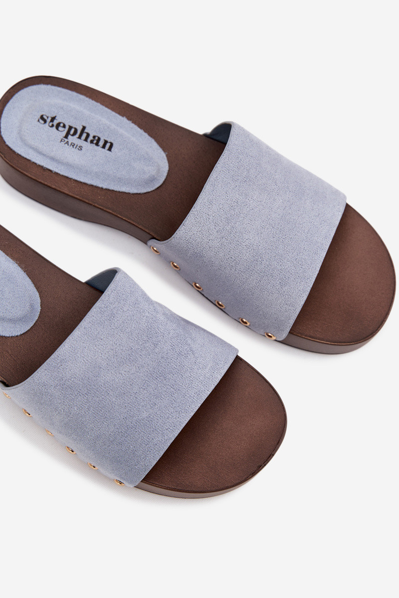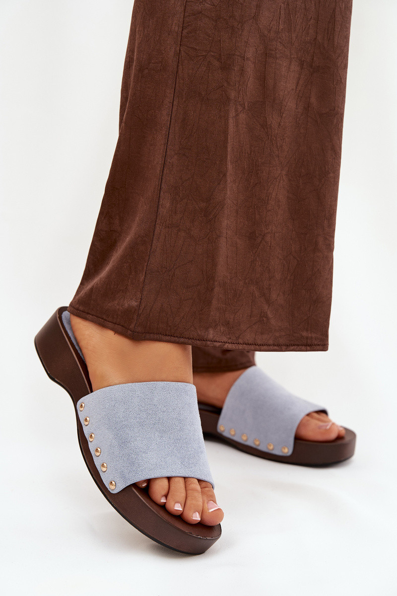 Chanclas de mujer con clavos dorados color azul Ferinna