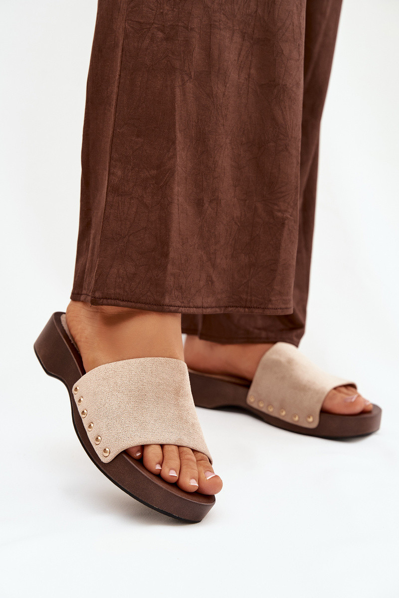 Chanclas de mujer con clavos dorados color arena Ferinna