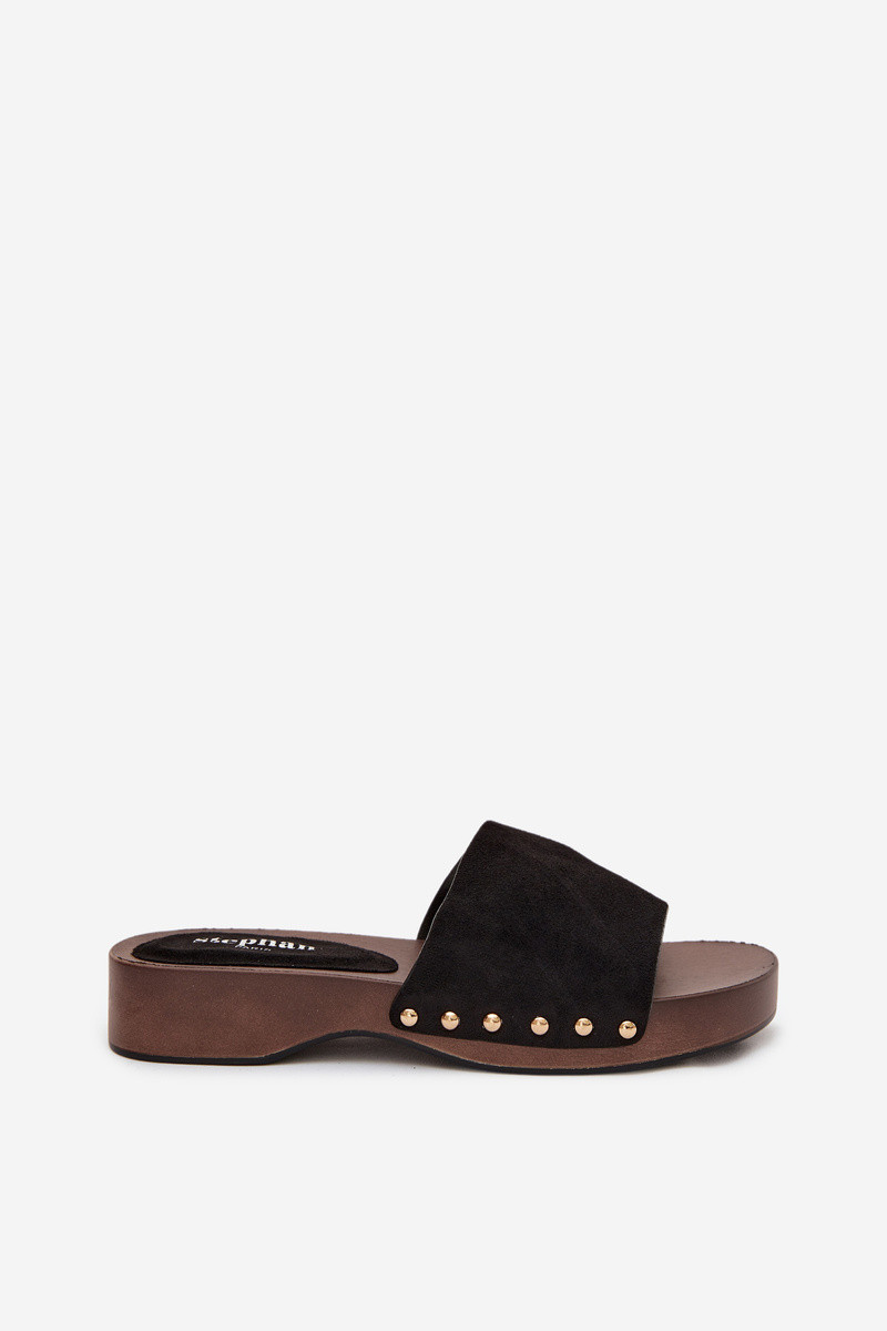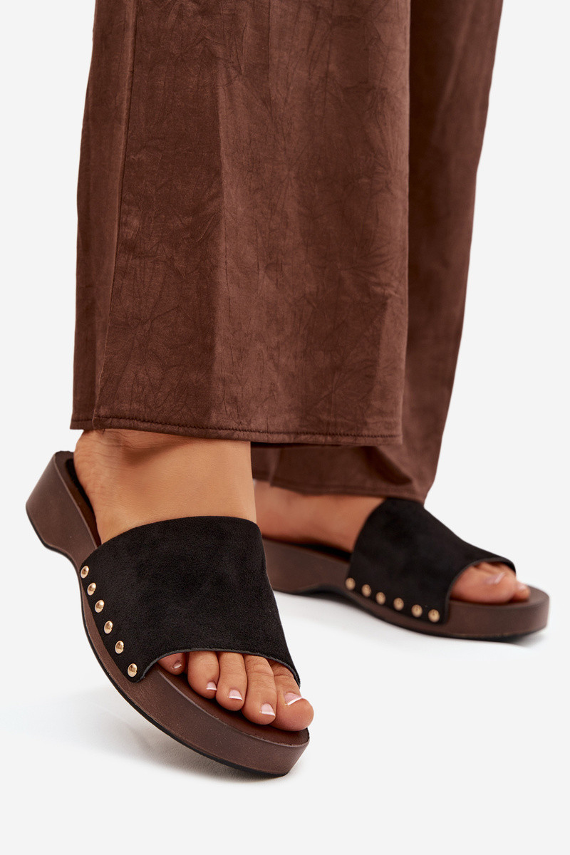 Chanclas de mujer con clavos dorados color negro Ferinna