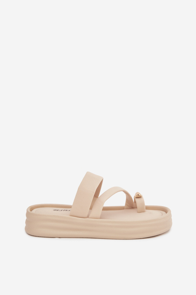 Chanclas color marfil con tiras y detalles dorados Farielle