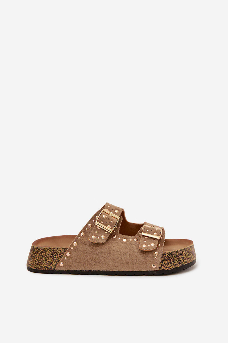 Chanclas color caqui con hebillas doradas y clavos Tervina