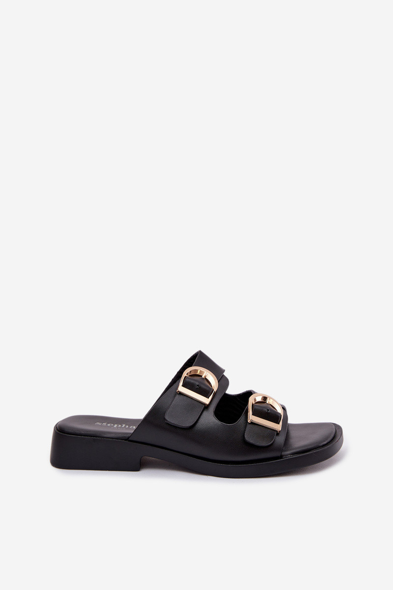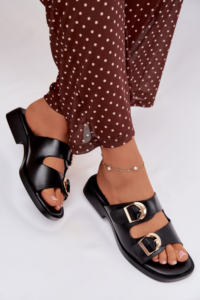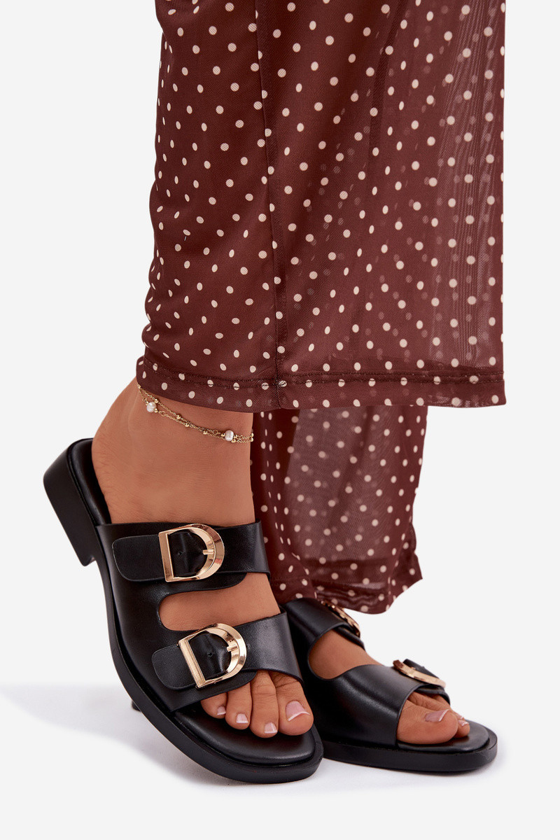Chanclas de mujer color oro con hebillas color marrón claro