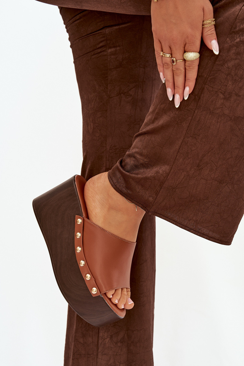 Chanclas de mujer con plataforma y tachuelas color marrón Tai turireline