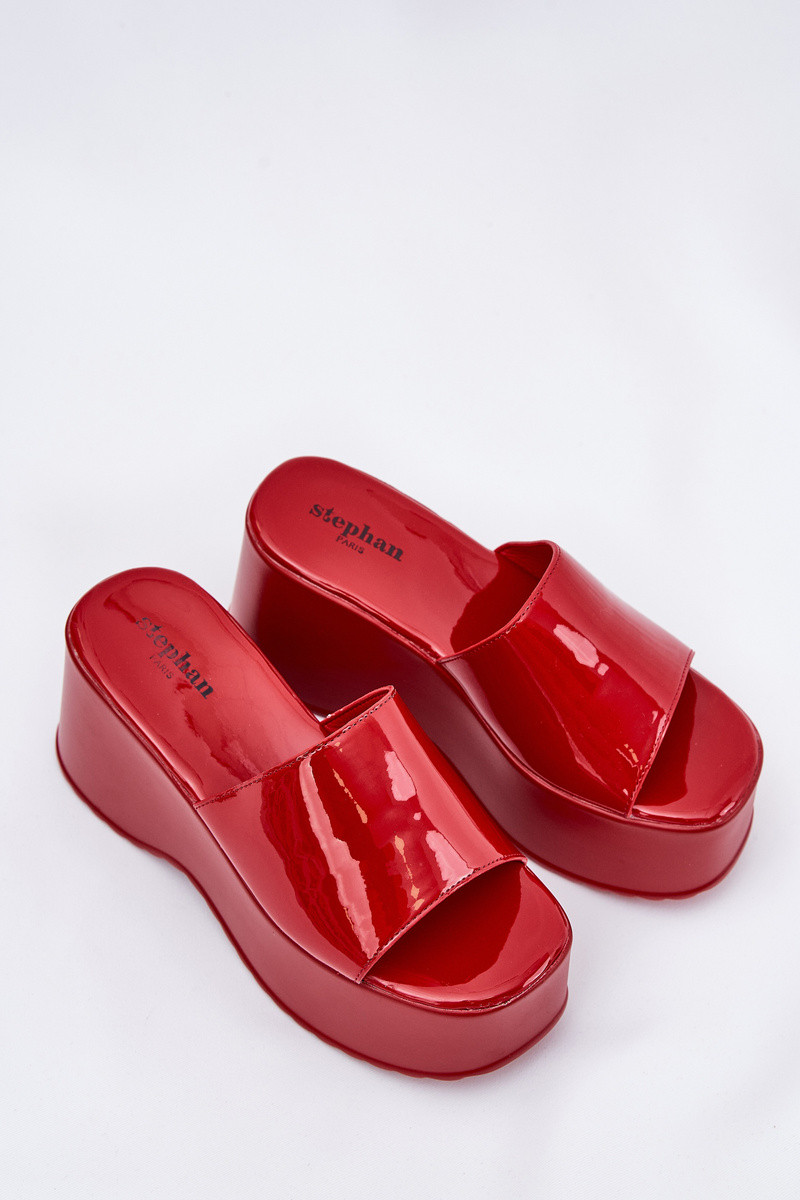 Chanclas de mujer con efecto charol y plataforma en rojo Nellevia