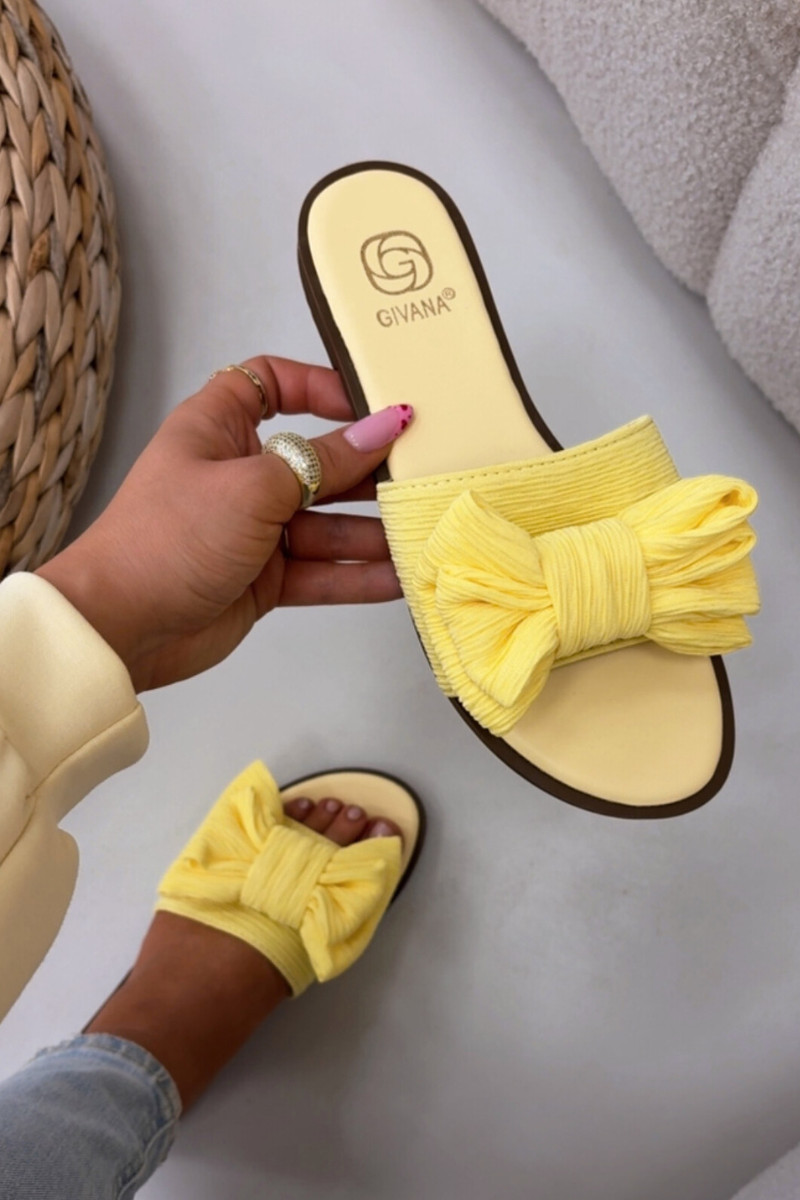 Zapatillas de mujer con tacones anchos y lazos color amarillo Amivelle